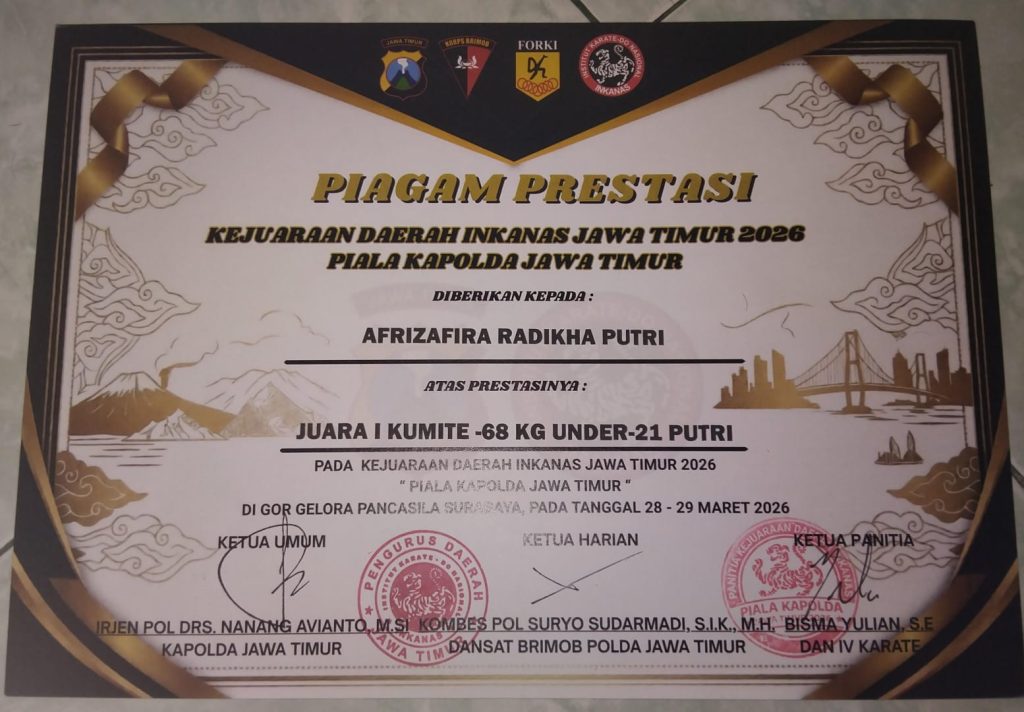 Lamongan – Kontingen Institut Karate-Do Nasional (Inkanas) Kabupaten Lamongan menorehkan prestasi membanggakan dalam ajang Kejuaraan Daerah (Kejurda) Inkanas Piala Kapolda Jawa Timur 2026. Kejuaraan tersebut digelar pada 28–29 Maret 2026 di GOR Gelora Pancasila, Surabaya.
